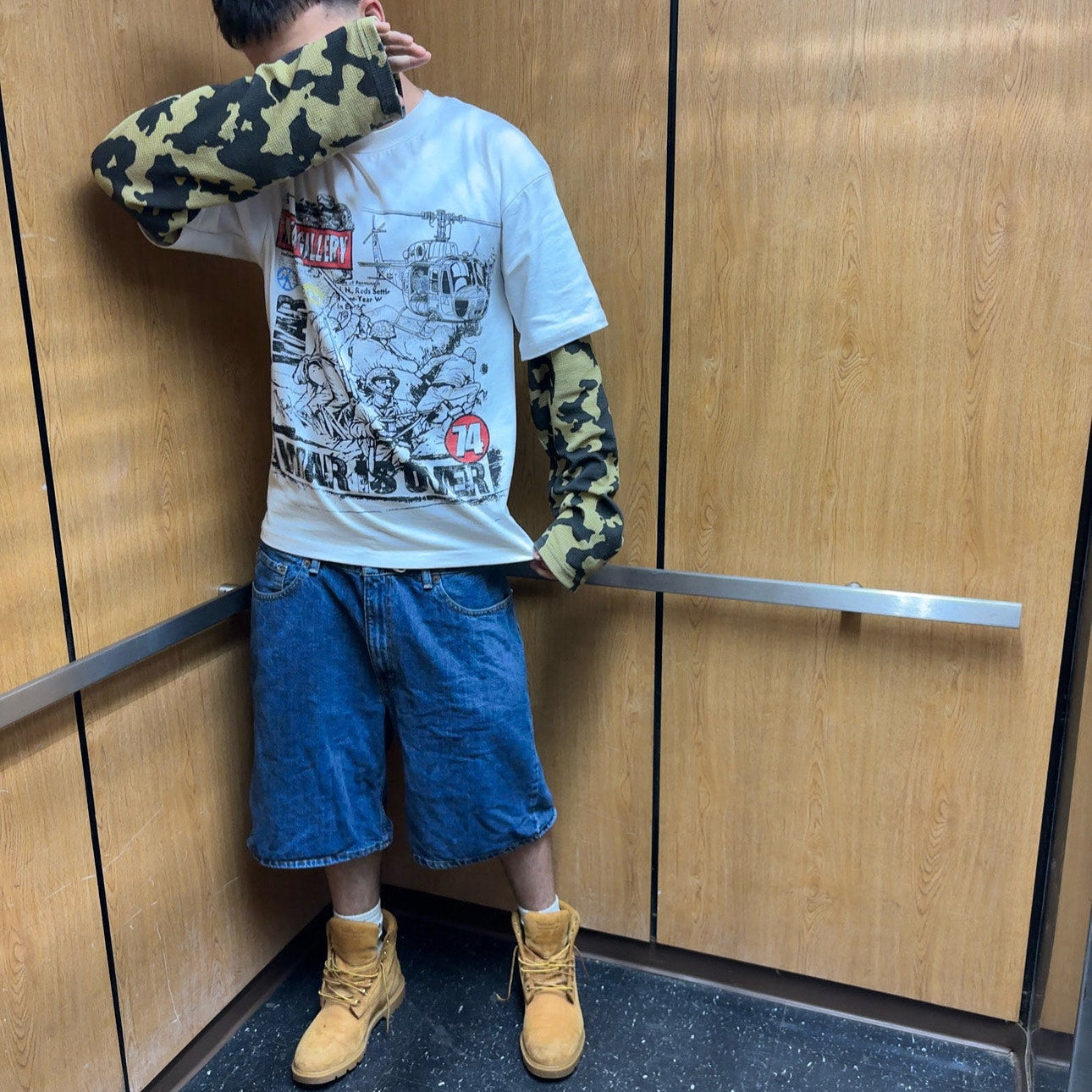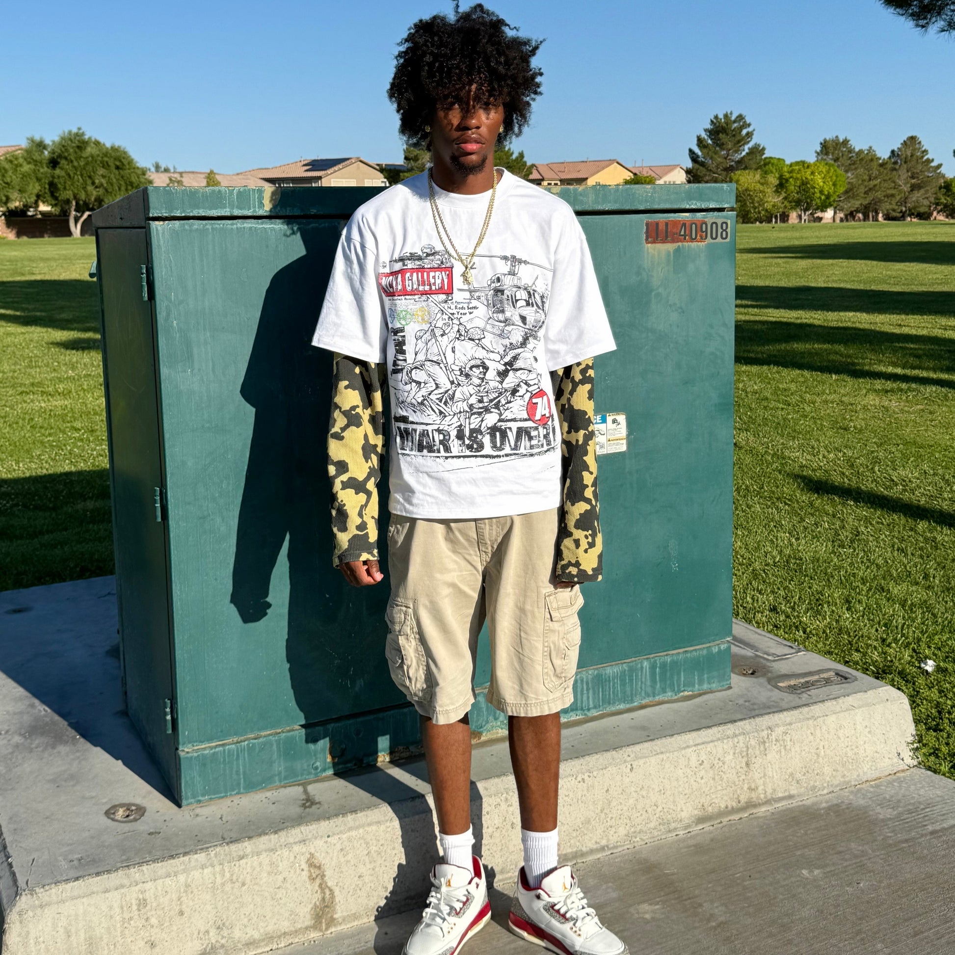 Crafted from 260 GSM premium cotton, this long sleeve T-shirt delivers a structured, heavyweight feel without sacrificing comfort. The standout feature: camo-printed sleeves paired with a clean white body, making this a bold yet versatile piece in any wardrobe.